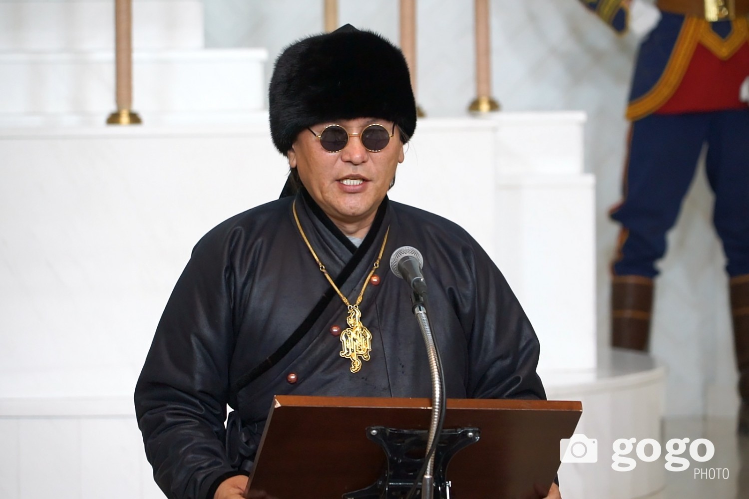 "Тойроод гарахгүй туулаад өнгөрөх энэ орчлонд ирээдүй хойчийноо төлөө чадах бүхнээ хийж, үйл хэрэг хүсэл мөрөөдлийг нь бага ч болтугай урагшлуулахын төлөө бид амьдрах ёстой. Өвөг дээдсийнхээ үзэл санаа, хүчирхэг оюун ухааныг дахин мандуулахын төлөө бүх хүчээ зориулан хойч үедээ хүчирхэг Монголоо уламжлуулан үлдээхийн төлөө ухуулан сэргээж явахаа төрийн сүлд есөн хөлт их цагаан тугныхаа өмнө амлан тангараглая” гэсэн юм.