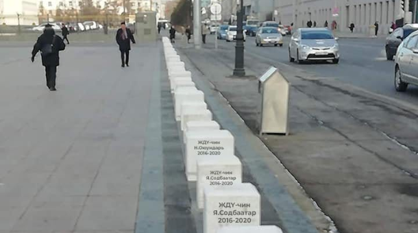 Сошиал орчинд “Танхай эмээ” нэрээрээ алдаршсан нэгний оруулсан зураг хоёрхон цагийн дотор 80 шейр авч байгаа харагдана. Есдүгээр сарын 4-нөөс хойш таг чиг, ажин түжин суусан “Танхай эмээ” ийнхүү гурван сар гаруйн дараа “амь орж”, “Бүрлээчид та нарынхаа гэгээн дурсгалыг хүндэтгэж гэрэлт хөшөөг чинь төв талбайдаа мөнхлөв. ЖДҮ-чин та нөхөд минь ард түмэн биднийхээ зүрх сэтгэлд үүрд мартагдалгүй хоногшин занагдах болно. Тамдаа хүрэх зам чинь саадгүй байг. Монголын ард түмнээс” гэсэн бичил тайлбартай зураг тавьж, цахим ертөнцөд эргэн ирэх нь тэр. ЖДҮ-гийн мөнгөнөөс зээл авсан гишүүдийн нэрийг бичсэн жижиг тавцанг Сүхбаатарын талбайн зүүн хэсэгт, Соёлын төв өргөөний өөдөөс харуулж зам дагуу эгнүүлэн тавьсан байх бөгөөд дээрх үгийг өмнөтгөл болгон бичсэн байна. Эл үйлдэл нь сонгуулийн салхи сэвэлзэж эхэлснийг сануулж байх шиг.