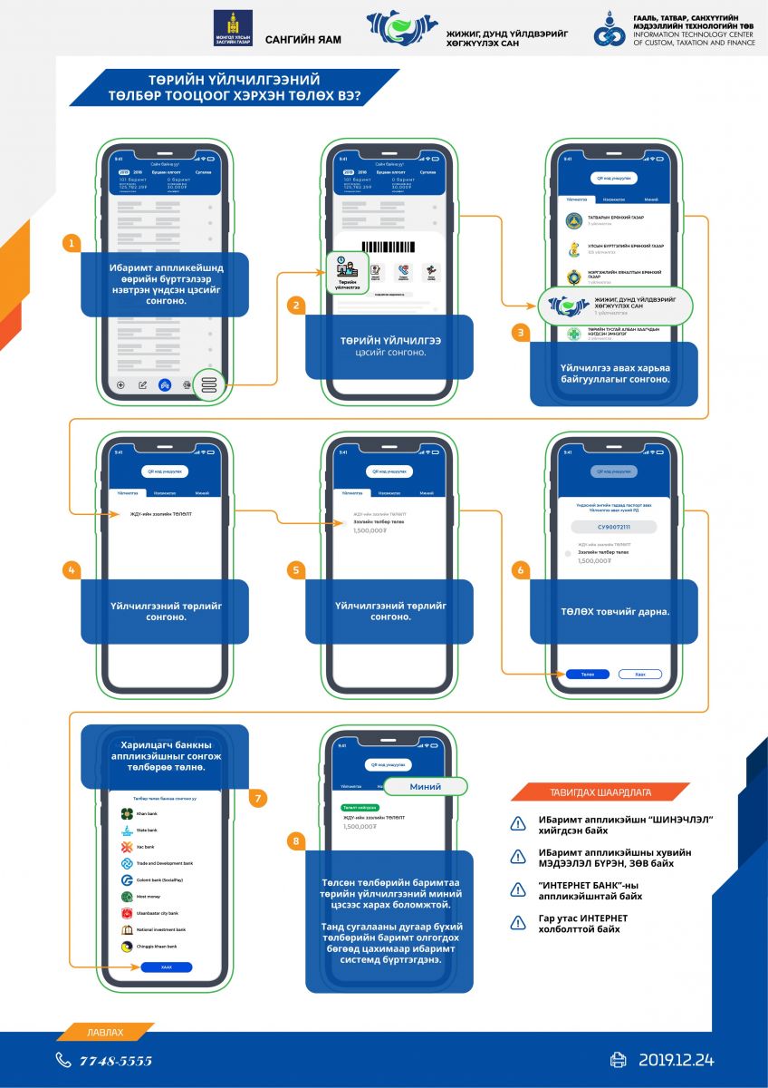 Дээрх үйлчилгээнүүдийг гар утаснаасаа авахын тулд иргэд өөрийн утсан дээрх И-баримт аппликэйшн руу нэвтрэн “Төрийн үйлчилгээ” цэсийг сонгон "Жижиг, дунд үйлдвэрийг хөгжүүлэх сан"-ийн зээл төлөлт үйлчилгээг сонгоно. Үүний дараагаар харилцагч төлбөр төлөх арилжааны банкаа сонгон тухайн банкны интернэт банкаар, эсвэл Social Pay зэрэг дижитал хэтэвчний тусламжтайгаар үйлчилгээний хураамжаа