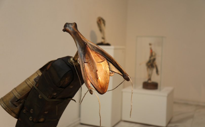 далны сийлбэрүүдээс гадна далны ясны хэлбэртэй хүрэл баримал бүтээсэн нь мөн үзэсгэлэнд тавигджээ. Эртний олдворыг ашиглан баатрын дүрийг бүтээхдээ хүрэл цутгамал далны ясыг малгайн орой дээрх чимэг болгон босгосон нь шинэлэг хийгээд тус үзэсгэлэнгийн бас нэгэн чимэг, тод өнгө нь болж буй юм.