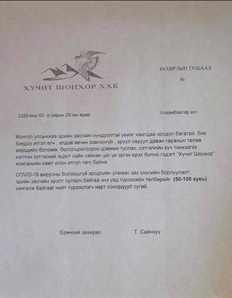 “COVID-19” халдварын тархалтын улмаас Засгийн газраас засаг захиргаа, нутаг дэвсгэрийн нэгж, төрийн болон нутгийн захиргааны байгууллага, хуулийн этгээдийг 2020 оны хоёрдугаар сарын 13-аас эхлэн Гамшгаас хамгаалах өндөржүүлсэн бэлэн байдлын зэрэгт хэсэгчлэн шилжүүлсэн билээ.