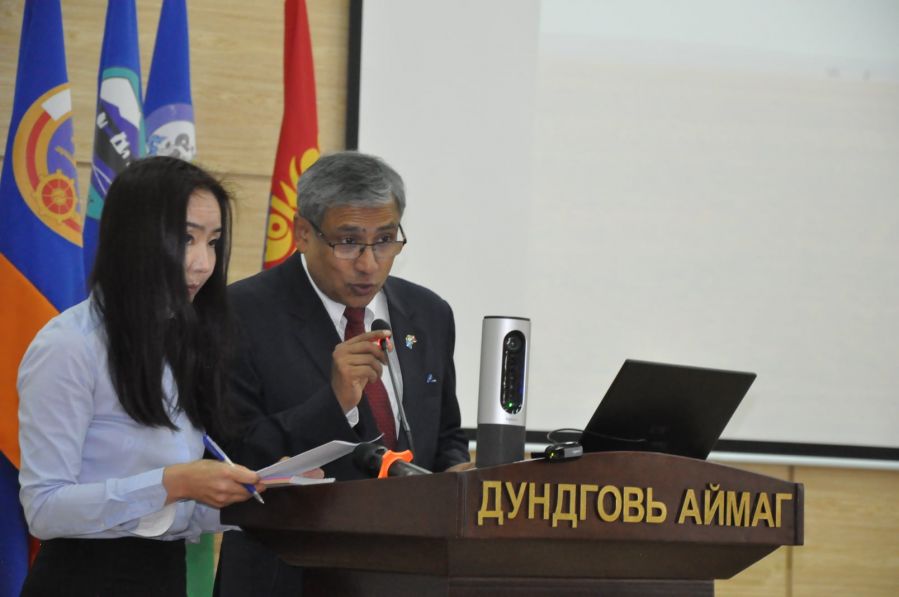 Сургалтын үйл ажиллагаанд НҮБ-ын Монгол дахь Суурин төлөөлөгч Тапан Мишра болон төслийн зохицуулагч Г.Мөнхболор болон төслийн баг, ХХААХҮ-ийн сайд Ч.Улаан болон Хөвсгөл, Өмнөговь, Сүхбаатар, Төв, Сэлэнгэ зэрэг аймгийн ХХААГ-ын дарга нар, мэргэжилтнүүд оролцож байна.