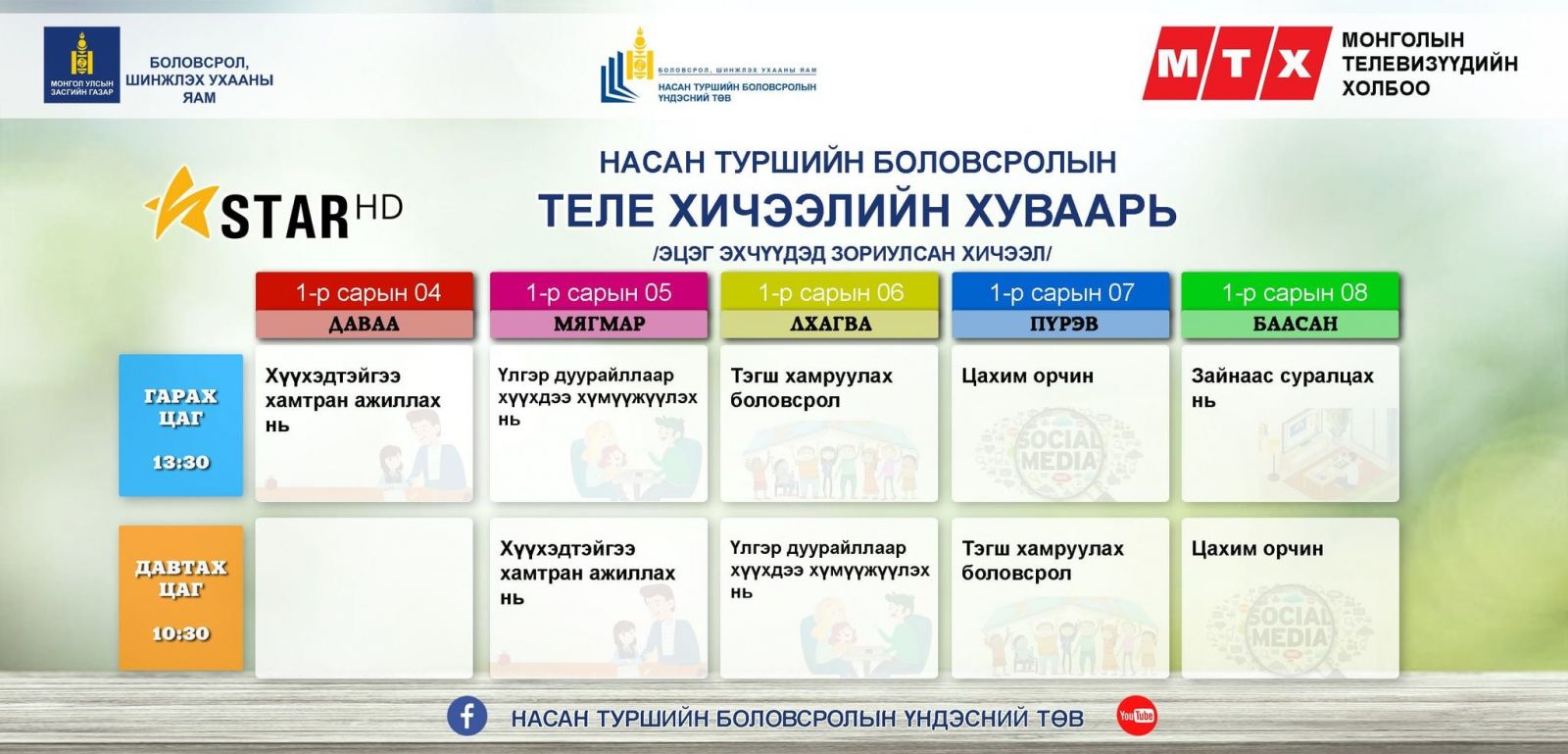 Эцэг эхчүүдэд зориулсан цуврал теле хичээлийг “Стар HD” телевизээр өдөр бүрийн 13:30 цагт үзэх боломжтой