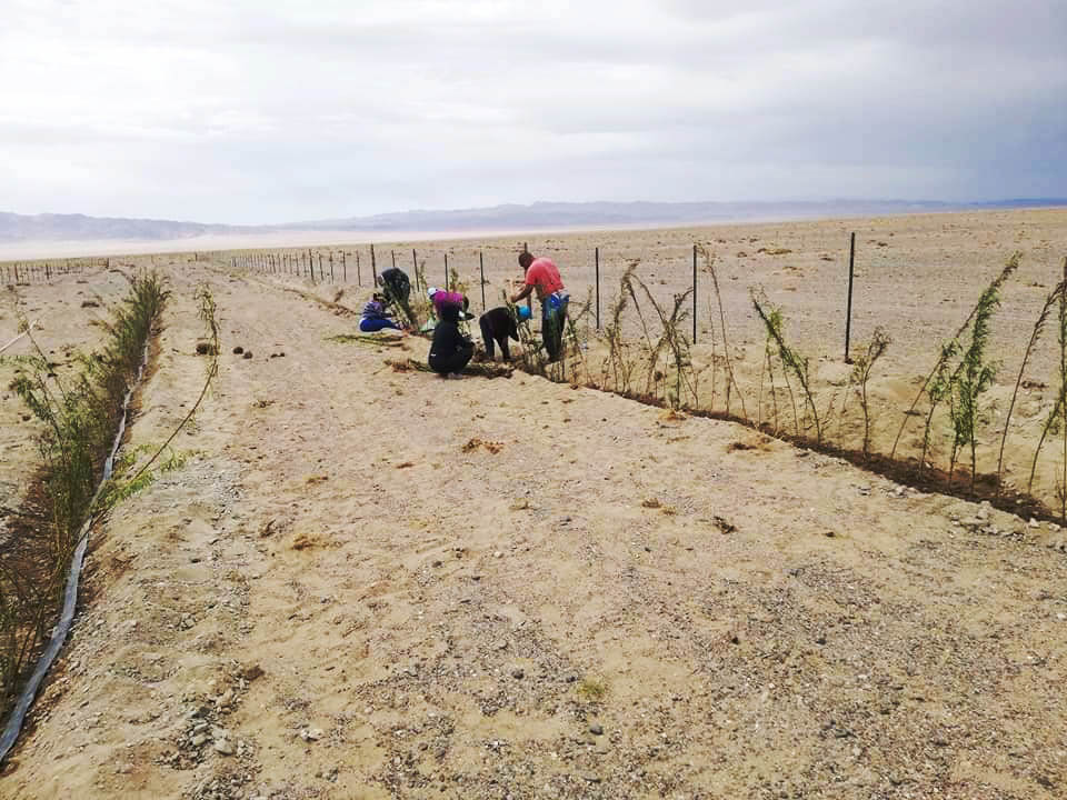 Говийн халцгай шар тал, Баянхонгор аймгийн Баацагаан суманд 500 метр урт гурван эгнээ 5000 ширхэг улаан бургасыг өнгөрсөн жилийн хавар суулгажээ. Үүнийг гадуур нь төмөр хашаагаар хамгаалан малд идэгдэж, хөлд нь үрэгдэхээс хашиж тойруулсан аж. Мөн энэ газарт суулгасан бургасуудыг услахад зориулж худаг гаргасан бөгөөд арчилж торддог нэг өрх дэргэд нь амьдардаг.