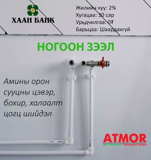 Байгаль орчин аялал жуулчлалын яамны дэмжлэгтэйгээр Хаан банк, Төрийн банктай хамтран Ногоон зээл төслийг хэрэгжүүлж Эко ариун цэврийн байгууламж хийлгэхээр төлөвлөж байгаа бол Хаан банкнаас жилийн 2%-ийн хүүтэйгээр, Төрийн банкнаас жилийн 3%-ийн хүүтэйгээр зөвхөн энэ үйлчилгээнд хувь хүн хамгийн ихдээ 10 сая хүртэлх дүнтэй үйлчилгээ зээлээр авах боломжтой. Харин халаалтын хувьд
