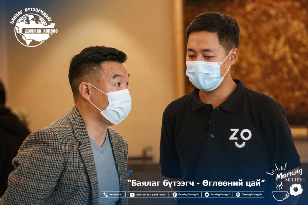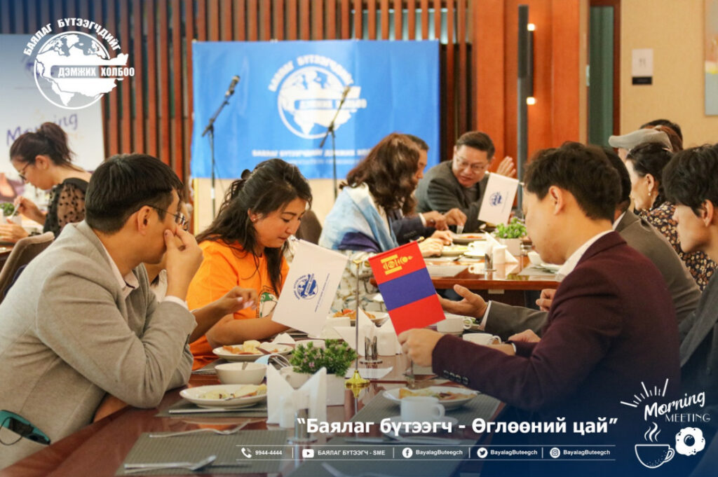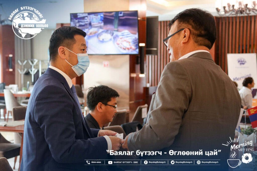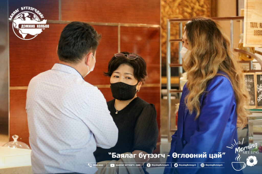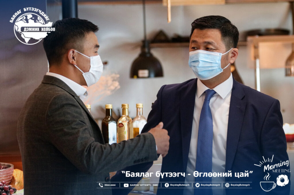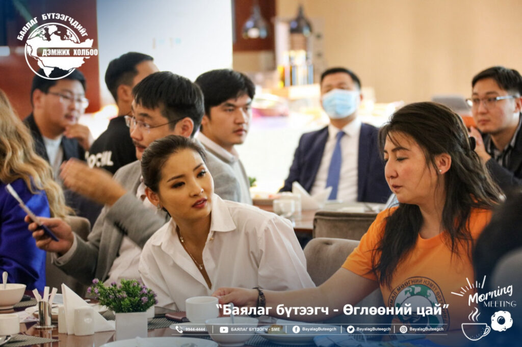 “Баялаг бүтээгчдийг дэмжих холбоо“-оос “Баялаг бүтээгч-өглөөний цай” зангиагүй уулзалтыг зохион байгууллаа. Уулзалтаар цар тахлын үед төрөөс баялаг бүтээгчдийг хэрхэн дэмжих бодлого, хууль эрх зүйн орчинг сайжруулах нь сэдвээр санал солилцсон юм. Зангиагүй уулзалтад баялаг бүтээгчдийн 40 гаруй төлөөлөл оролцсон бол урилгаар УИХ-ын гишүүн Ж.Чинбүрэн, Ц.Мөнхцэцэг нар болон зээлийн батлан даалтын сангийн захирал Ш.Алтанчимэг нар оролцлоо.