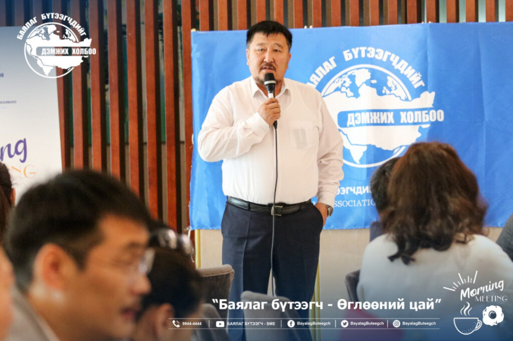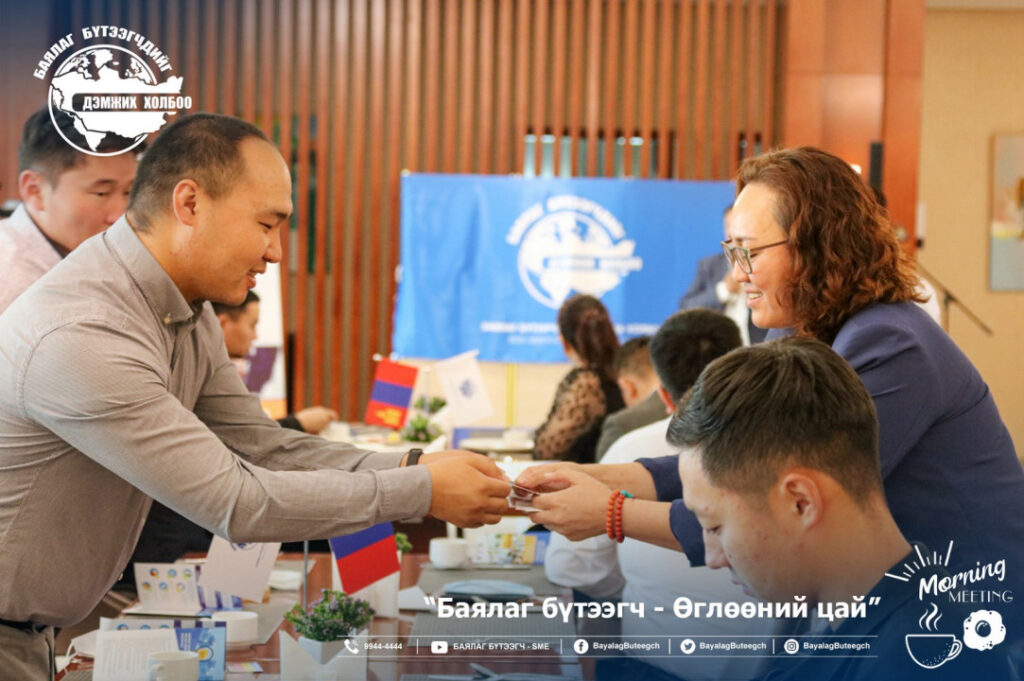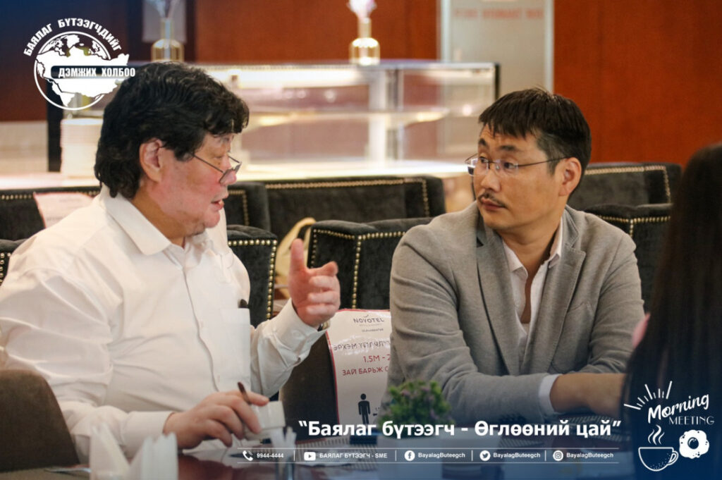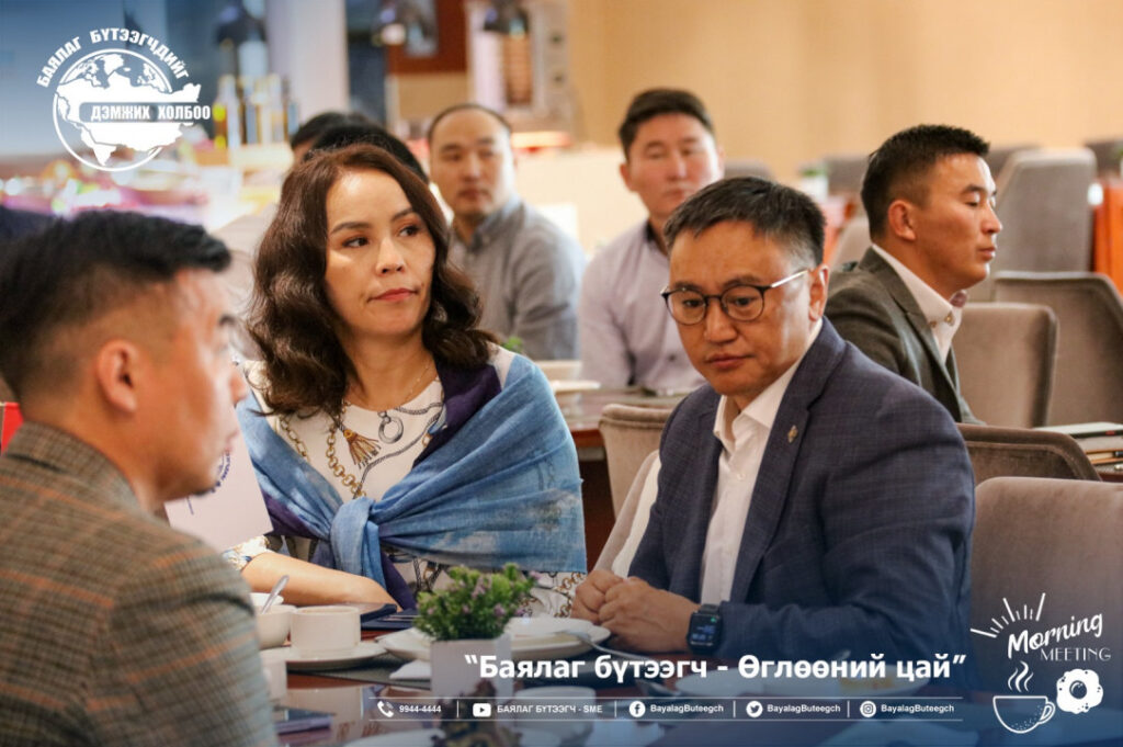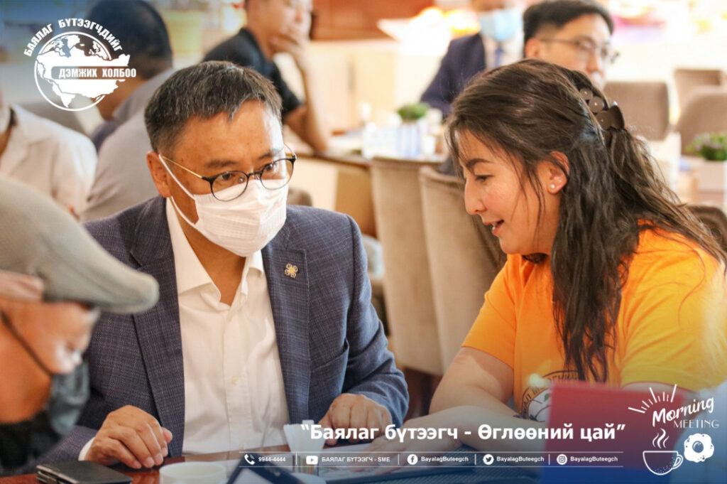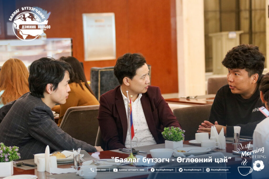 “Баялаг бүтээгчдийг дэмжих холбоо“-оос “Баялаг бүтээгч-өглөөний цай” зангиагүй уулзалтыг зохион байгууллаа. Уулзалтаар цар тахлын үед төрөөс баялаг бүтээгчдийг хэрхэн дэмжих бодлого, хууль эрх зүйн орчинг сайжруулах нь сэдвээр санал солилцсон юм. Зангиагүй уулзалтад баялаг бүтээгчдийн 40 гаруй төлөөлөл оролцсон бол урилгаар УИХ-ын гишүүн Ж.Чинбүрэн, Ц.Мөнхцэцэг нар болон зээлийн батлан даалтын сангийн захирал Ш.Алтанчимэг нар оролцлоо.