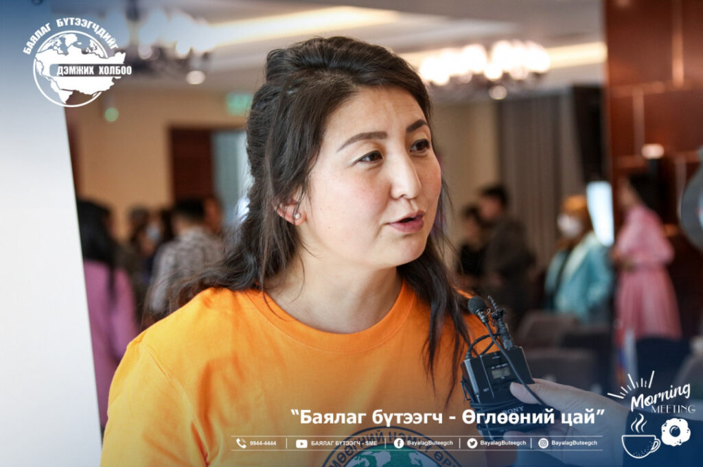 “Баялаг бүтээгч- өглөөний цай” уулзалтад хүрэлцэн ирсэн зээлийн батлан даалтын сангийн захирал Ш.Алтанчимэг Баялаг бүтээгч нартаа маш сайхан мэдээ дуулгахаар ирсэн тухайгаа ярилаа. Үүнд: Зээлийн батлан даалтын санг дэмжих замаар ажлын байрыг нэмэгдүүлэх төсөл хөтөлбөр болох Азийн хөгжлийн банкны МОН 338 төслийн 12-15%-ийн хүүтэй 10 хүртэлх жилийн хугацаатай авах боломжтой хөрөнгө оруулалтын болон эргэлтийн хөрөнгийн зээлийг 30-60%-ийн батлан даалттай гаргадаг байсан ба ерөнхийдөө тэрбум хүртэлх зээлд 420 сая хүртэлх дүнтэй батлан даалтад гаргадаг байсан.