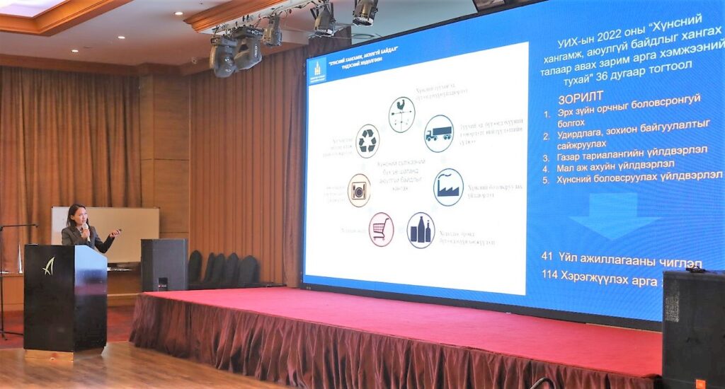 Монгол Улсын Ерөнхийлөгчийн тамгын газар, ХХААХҮЯ, ЖДҮГ, ЕСБХБ, "Хөгжлийн Шийдэл" ТББ-н BEST хөтөлбөр, Зээлийн батлан даалтын сан зэрэг байгууллагын төлөөлөл хэрэгжүүлж буй бодлогын арга хэмжээ, хэрхэн хамрагдах талаар дотоодын үйлдвэрлэгч, аж ахуй нэгжүүдийн төлөөлөлд мэдээлэл өгөв. Сургалт, хэлэлцүүлэгт оролцогчдын зүгээс сонирхсон асуултдаа хариулт авлаа.