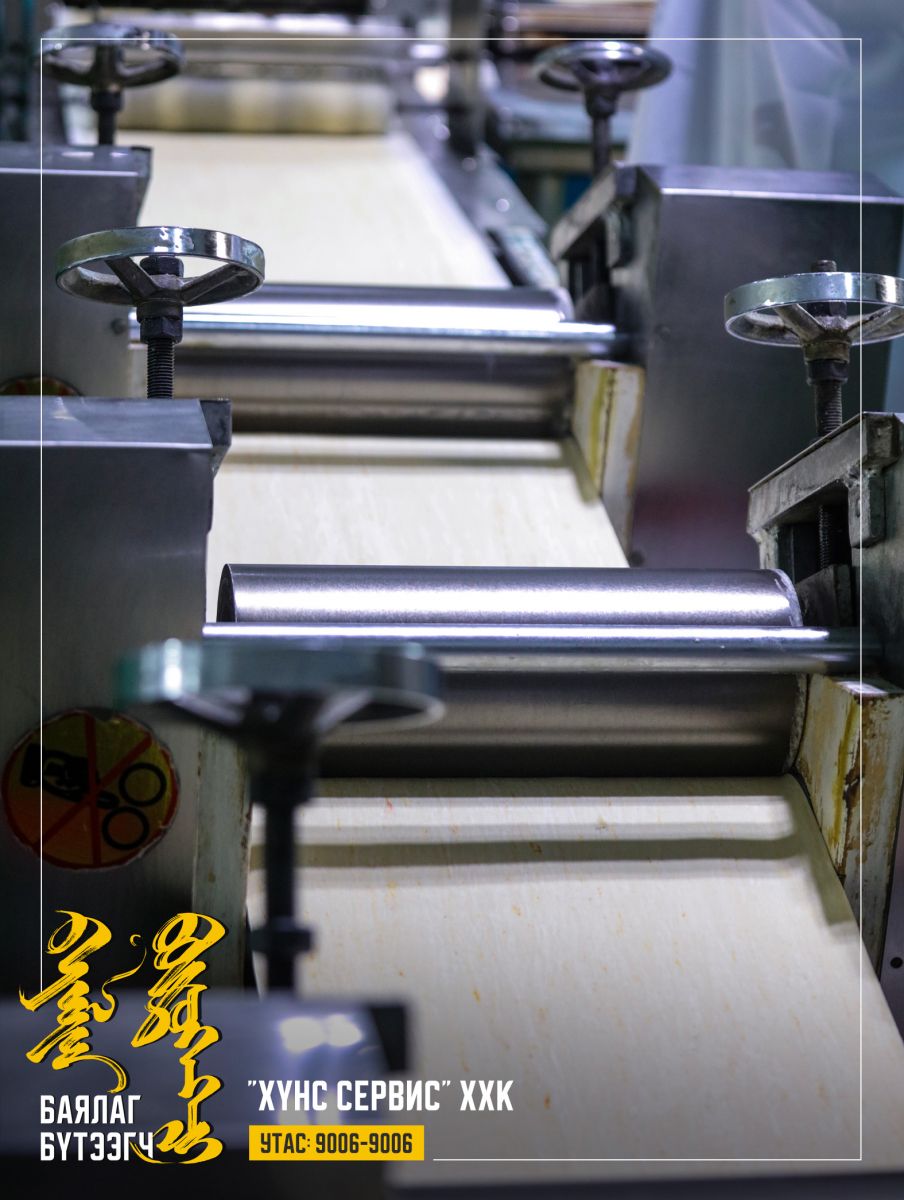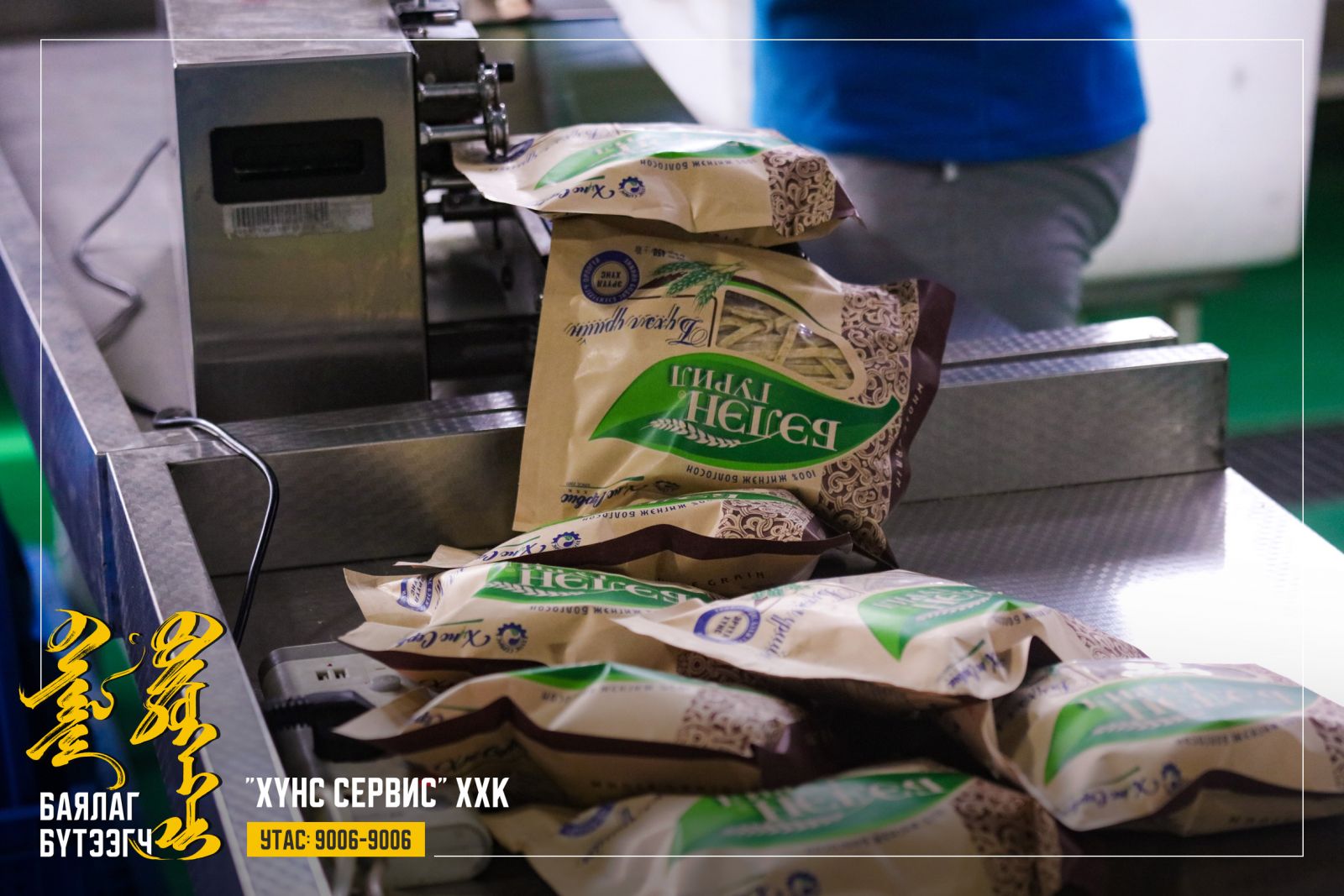 “Хүнс Сервис” компани нь түүхий эдээ "Улаанбаатар гурил", “Ерэн цагаан” зэрэг үндэсний томоохон үйлдвэрүүдээс бэлтгэн нийлүүлж бэхжүүлэгч, хадгалалтын хугацаа уртасгагч бодис ороогүй эрүүл бүтээгдэхүүн үйлдвэрлэдэг.