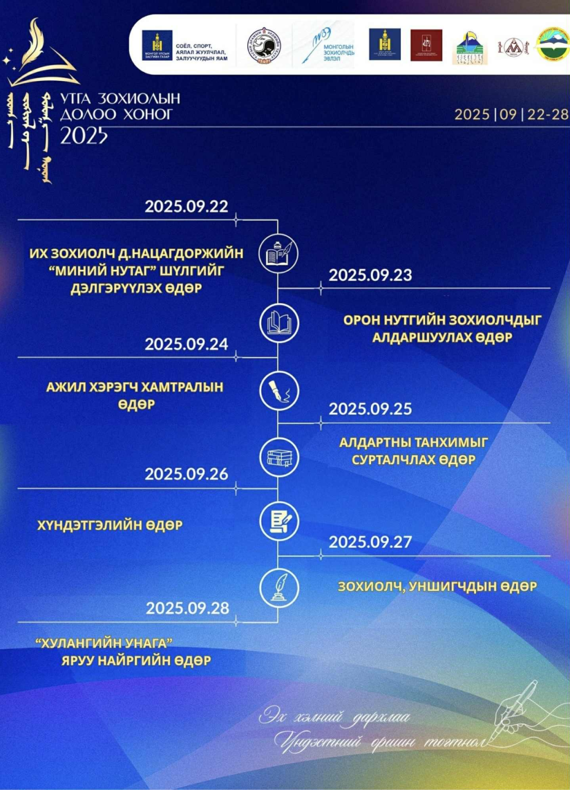 Завхан аймагт утга зохиолын 7 хоногийг уншигч, уран бүтээлчдийг ойртуулах утга зохиолын үнэ цэнийг таниулах зорилтот хөтөлбөртэйгээр тэмдэглэнэ.
