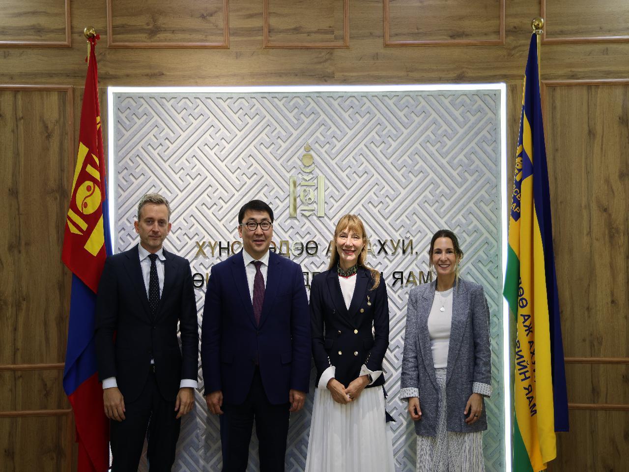 Хүнс, хөдөө аж ахуй, хөнгөн үйлдвэрийн яамны Төрийн нарийн бичгийн дарга Т.Жамбалцэрэн тэргүүтэй удирдлагууд НҮБ-ын Хөгжлийн хөтөлбөр (НҮБХХ)-ийн Монгол дахь суурин төлөөлөгч Матилда Димовска, тус хөтөлбөрийн Дэлхийн хүнсний системийн багийн зөвлөх Кристиан Дерлагэн, Мариа Соледад Риестра нарыг хүлээн авч уулзлаа.