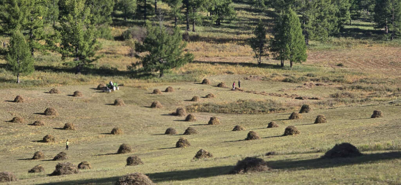Хадлан бэлтгэлийн ажилд дугуйт трактор 128, трактор хадуур 52, трактор тармуур 42, хаман боогч 237, гар хадуур 901, бага оврын трактор хадуур 976, хүн хүч 2604 ажиллаж байна.