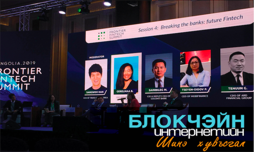 Гадаадын хөрөнгө оруулалтын дөрөвний гурвыг эзэлдэг уул уурхайн салбарын хөрөнгө оруулагчдын бизнесийн тогтвортой нөхцлийг хангаж чадахгүй байгаа манай улсын хувьд эдийн засгаа төрөлжүүлэх, уул уурхайн бус аль нэг салбарыг олон улсын зах зээлд гаргах шаардлага их байгаа. Яг энэ цаг үед Бразилийн конгрессын гишүүн, Япон, Солонгос, Хонконгийн Финтекийн холбооны тэргүүнүүд, финтек, блокчэйн технологийн компаниудын төлөөлөл бүхий 50 гаруй гадны энтрепренерүүд Монгол улсад 5-р сарын 9-11-ний өдрүүдэд цуглав. Монголын Финтекийн холбоо анх удаа олон улсын “Frontier Fintech Summit 2019” чуулганыг “Финтекийн ирээдүй” гэсэн уриан дор Гадаад харилцааны яам болон Санхүүгийн Зохицуулах хорооны дэмжлэгтэйгээр зохион байгуулсан юм. Энэ чуулганд Монголын Финтекийн холбооны Ерөнхийлөгчөөр оролцсоны хувьд дэлхий даяар хурдацтай хөгжиж байгаа энэ технологиуд тэр дундаа блокчэйн технологийг Монгол улс ашигласнаар ямар давуу тал үүсэх, ямар асуудал шийдэгдэж болох тухай нийгэмд хэлэлцүүлэг өрнүүлэх цаг болсон гэж үзэж байна.