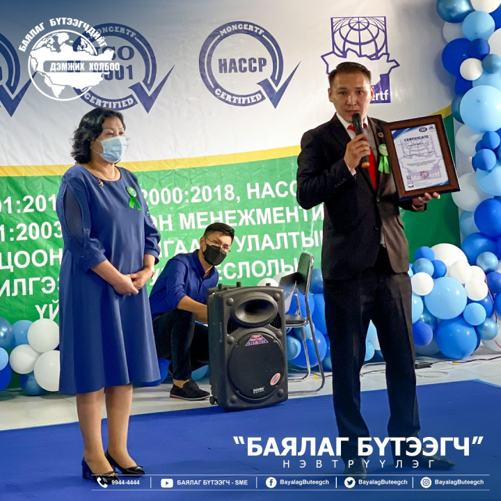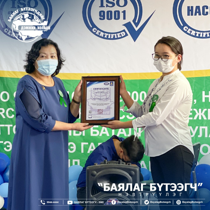 Монголын махны экспортыг эзэмшигч эрх бүхий дотоодын үйлдвэрүүдийн нэг “Цалуут Импекс” ХХК өнөөдөр буюу 2021.09.03 өдөр ISO 9001:2016, ISO 22000:2018, НАССР CAC/RCP/ 1:2003 нэгдсэн менежментийн тогтолцооны баталгаажуулалтын гэрчилгээ гардан авах ёслолын үйл ажиллагаа болж өндөрлөлөө. Ингэснээр олон улсын стандартын шаардлага хангасан 3 гэрчилгээг нэг дор авч байгаа юм.