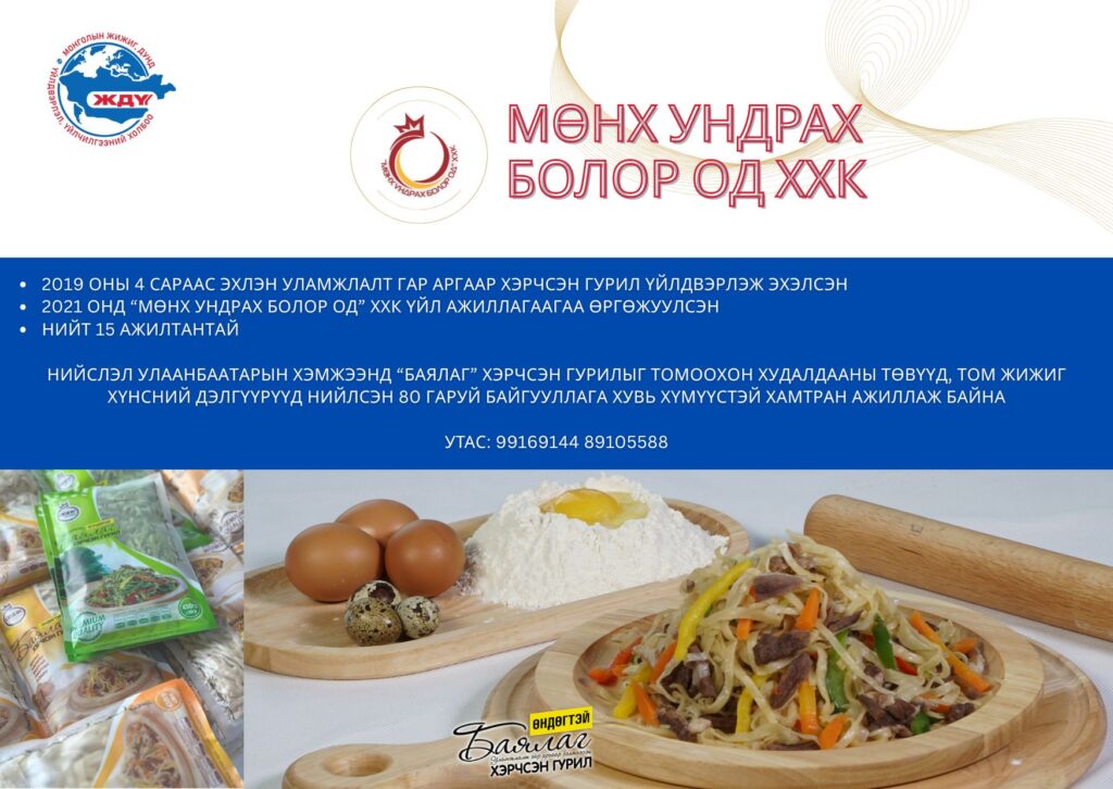 2019 оны 4 сараас эхлэн Уламжлалт гар аргаар хэрчсэн гурил үйлдвэрлэж эхэлжээ. Тус байгууллага нь Нийслэл Улаанбаатарын хэмжээнд “Баялаг” хэрчсэн гурилыг томоохон худалдааны төвүүд, том жижиг хүнсний дэлгүүрүүд нийлсэн 80 гаруй байгууллага хувь хүмүүстэй хамтран ажиллаж байна.