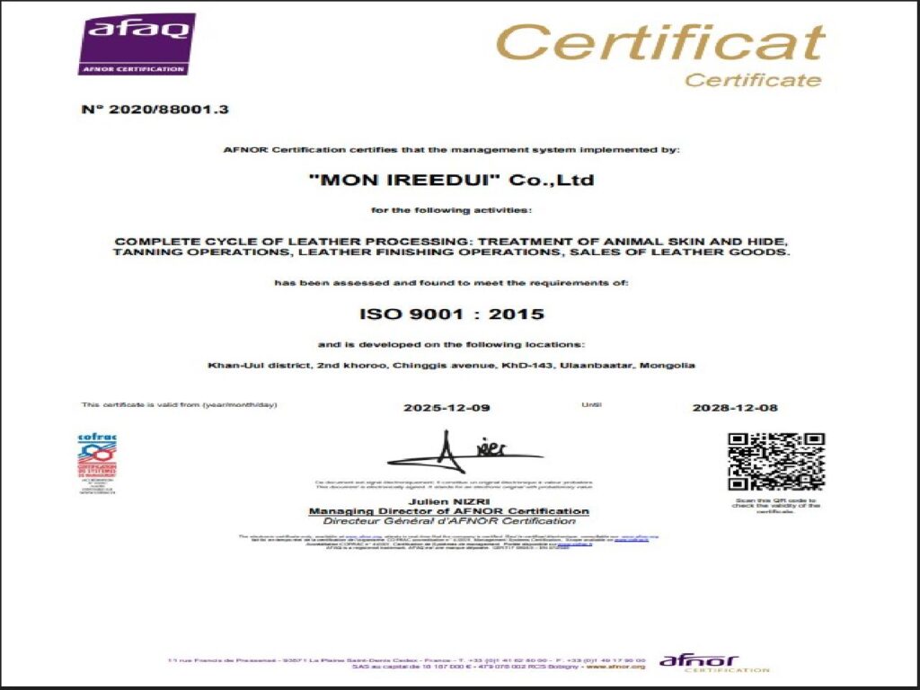 Арьс шир боловсруулах үйлдвэрлэлийн “Мон-Ирээдүй” ХХК олон улсын ISO стандартын баталгаажуулалтаа өргөжүүллээ